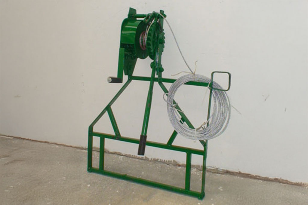 Los equipos están fabricados bajo normas vigentes, con sinfín en acero, cables de 7-8 mm certificados y trinquetes de seguridad.